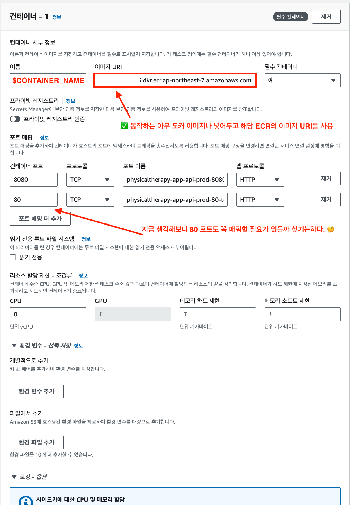 CONTAINER_NAME: MY_CONTAINER_NAME # 2.ECR의 컨테이너 이름